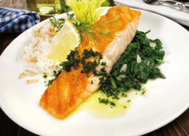 dazu Fingermöhrchen und Kartoffelpüree mit aromatischen Gartenkräutern