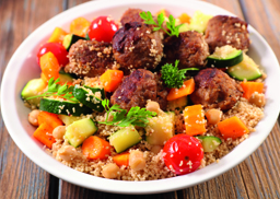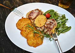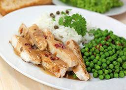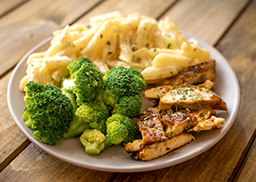 dazu Hähnchenfiletstreifen und gedünsteter Broccoli