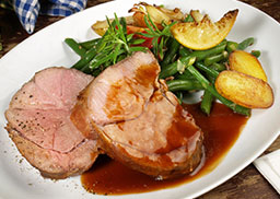 mit Bohnensalat und Bratkartoffeln