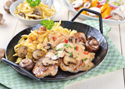 nach „Jäger Art“ mit Spätzle, dazu Mischgemüse