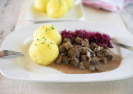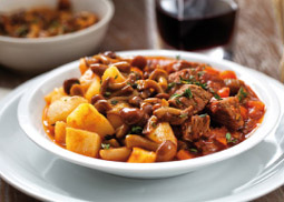 von Pute mit Karotten und Mischpilzen auf Risolee-Kartoffeln