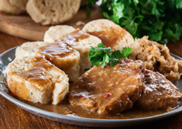 mit böhmischen Knödeln und Sauerkraut