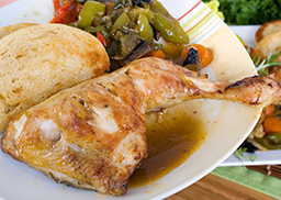 mit Hefeknödeln und Schmorgemüse