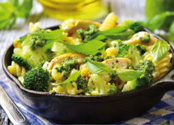 im Bratenfond, dazu Broccoli und Pommes Frites