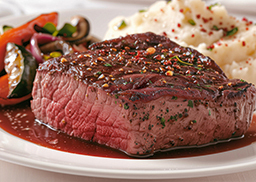 vom argentinischen Roastbeef, dazu Zucchini und Karotten an Kartoffelpüree