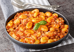 mit Sauce Bolognese aus Hackfleisch vom Rind und Bio-Tomatenpulpe, abgeschmeckt mit Basilikum