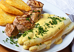 mit Sauce Hollandaise, Pommes Julienne und italienischem Pfannengemüse