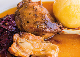mit Riesenkloß und deftigem Rotkohl